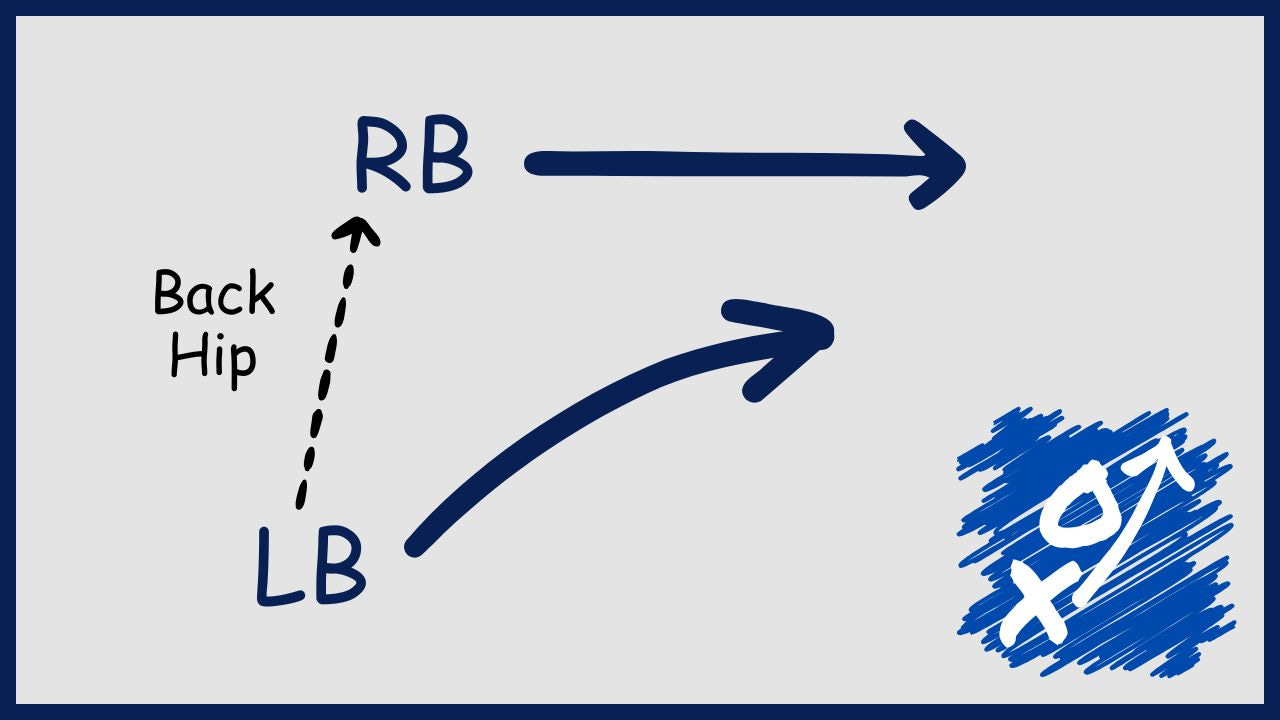 The Linebacker is set up on the BACK HIP of the Running Back.